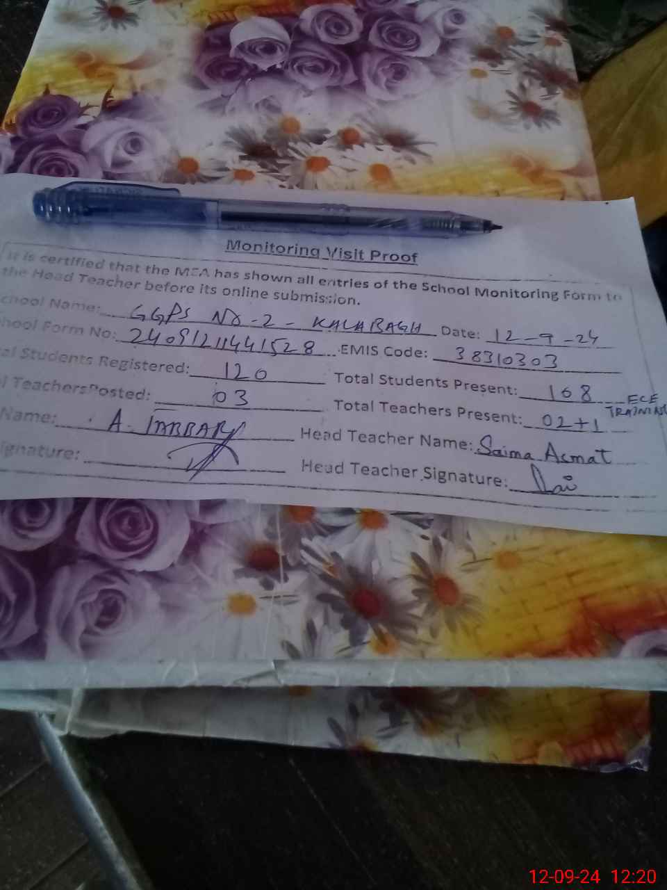 | Attendance Register | Head Teacher | MEA with School | Visit Proof |