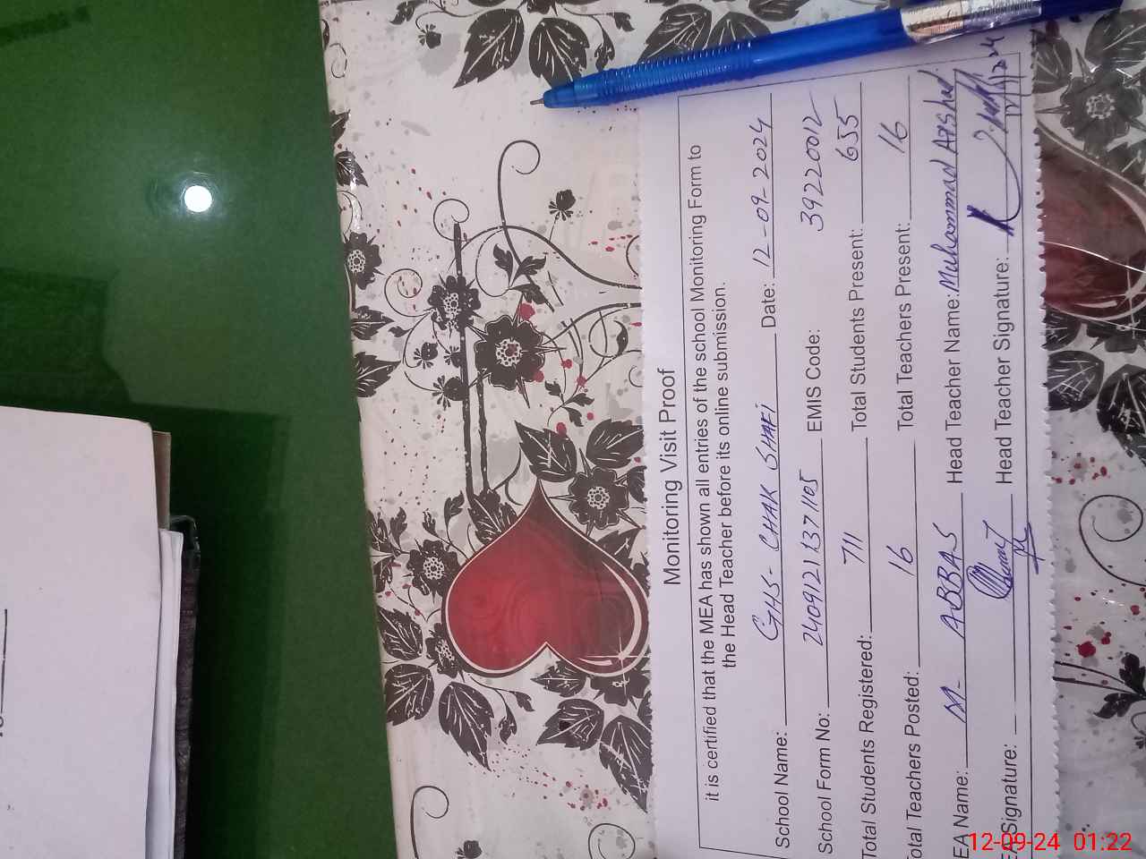 | EMIS Code: 39220012 | Name of School: GHS CHAK SHAFI | |||
