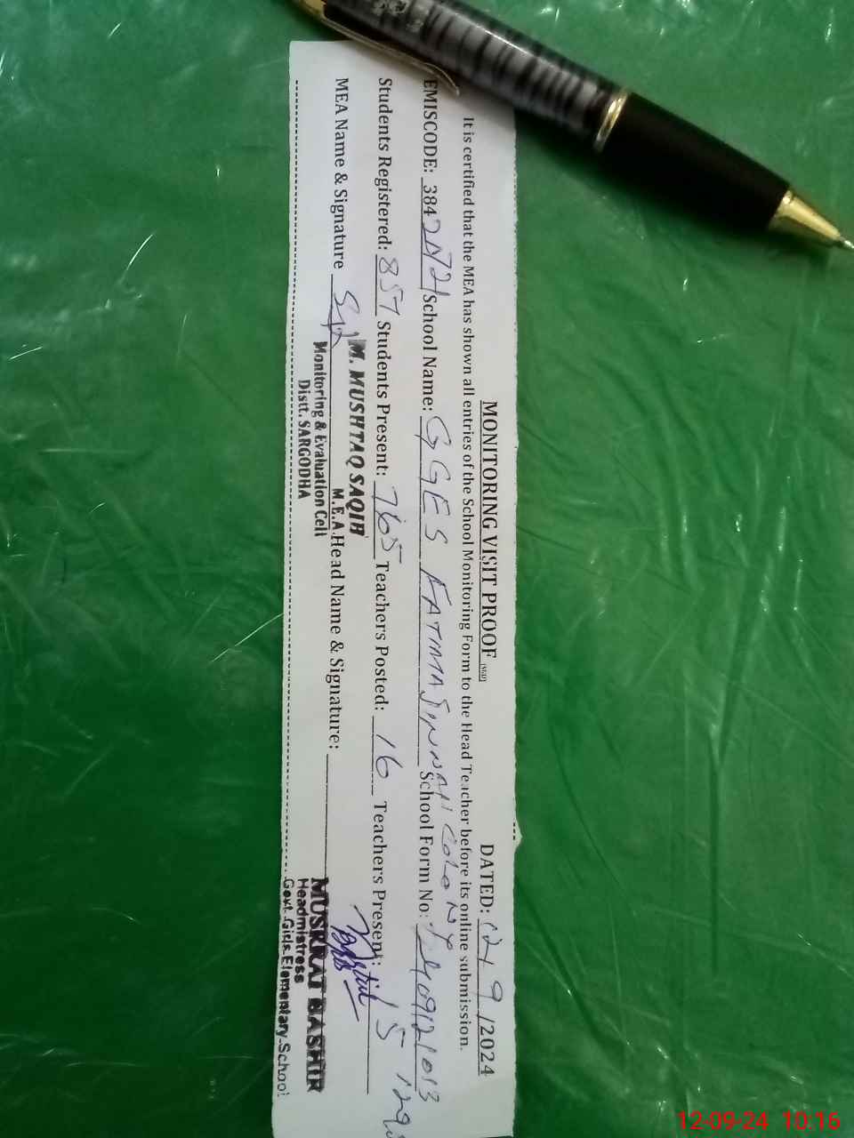 | EMIS Code: 38420721 | Name of School: GGES FATIMA JINNAH COLONY | |||