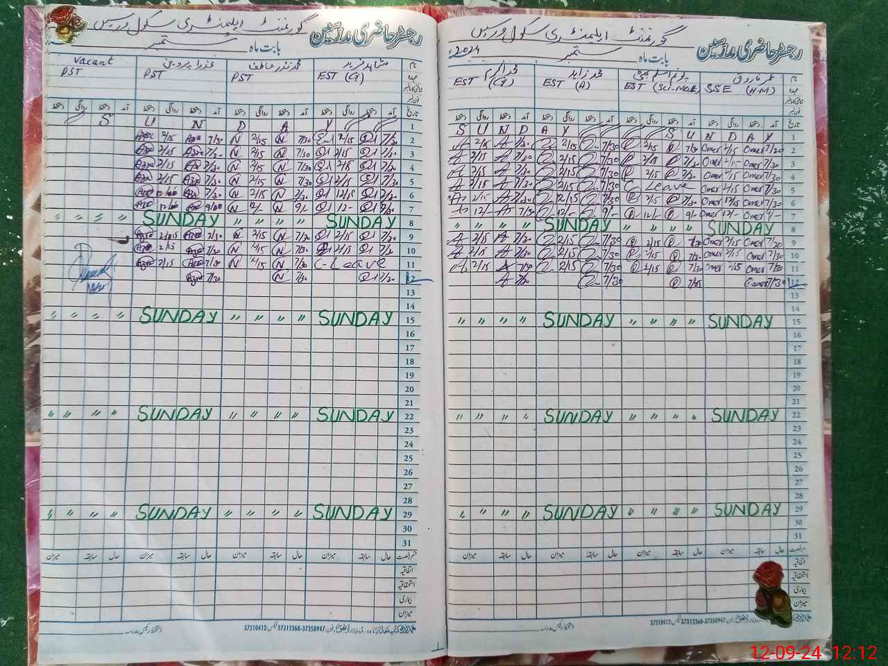| CNIC | Full Name | Designation | R/C | Absence During Last Calender Month |