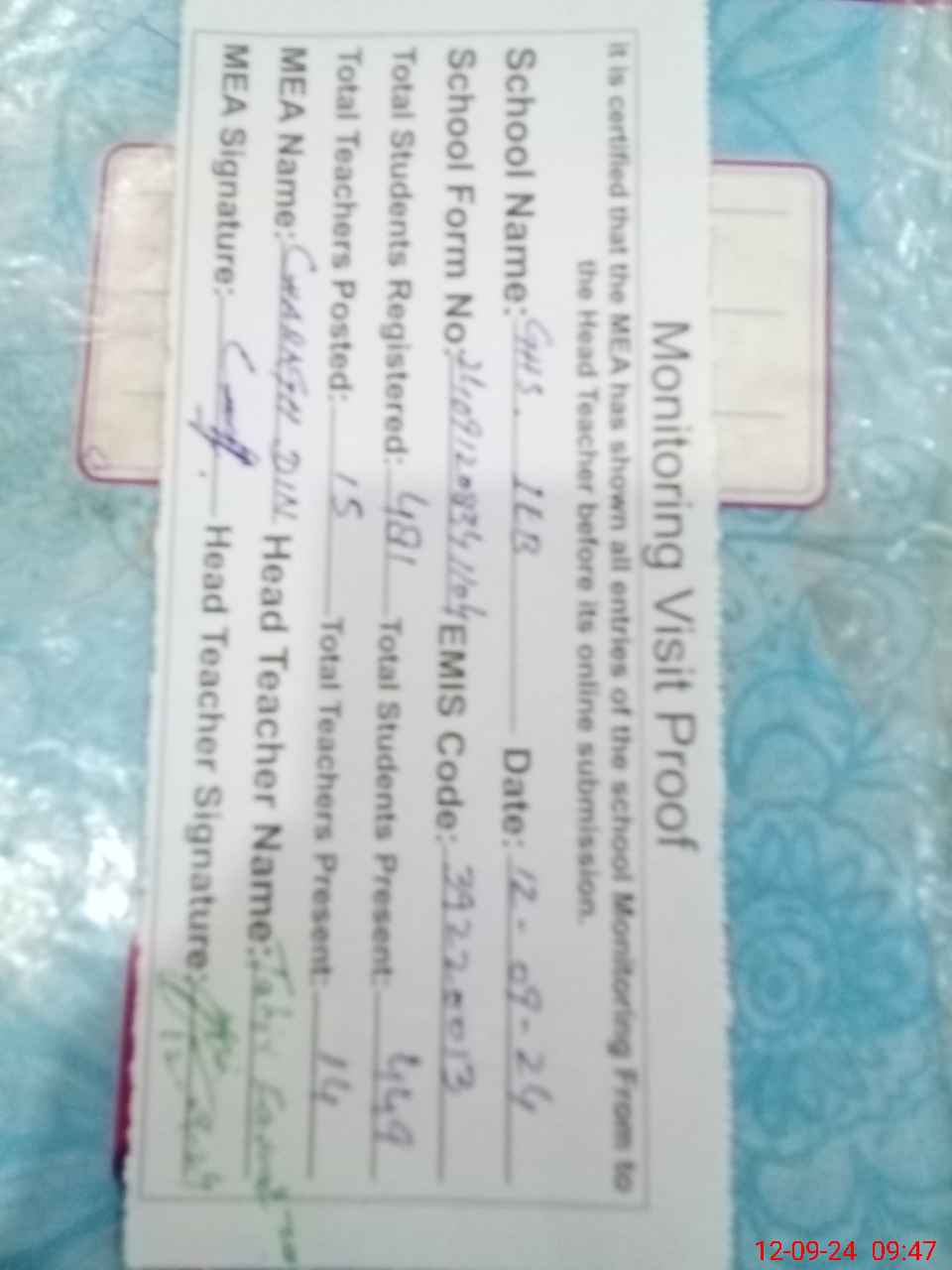 | EMIS Code: 39220013 | Name of School: GHS 1-EB | |||