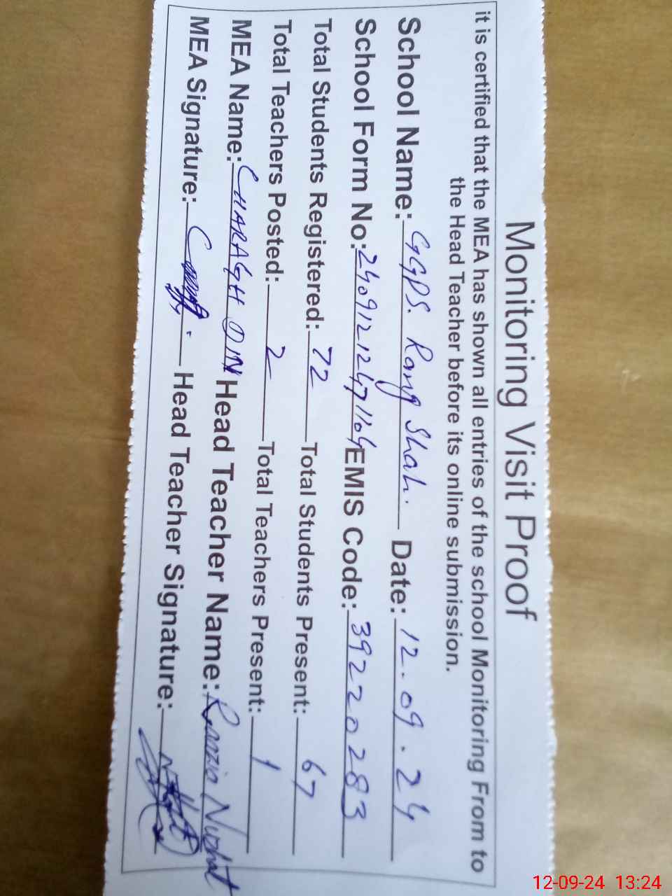 | EMIS Code: 39220283 | Name of School: GGPS RANG SHAH | |||