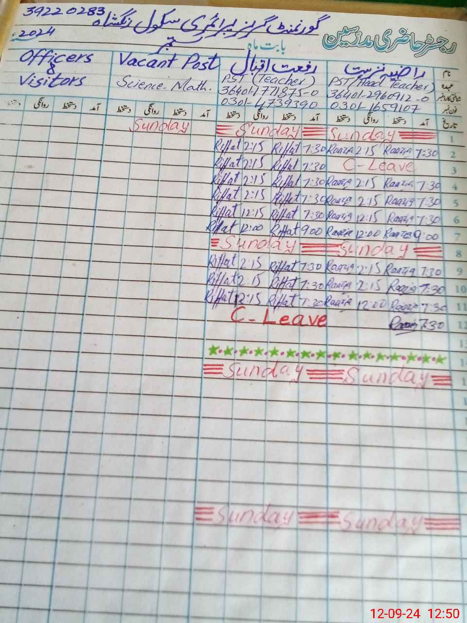 | Name: RA**** NU**** Designation: (School Headmaster's/Headmistress's) PST Phone/Cell Number: 03**** |