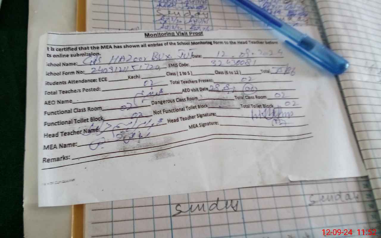 | EMIS Code: 32430081 | Name of School: GPS HAZOOR BUX JUT | |||