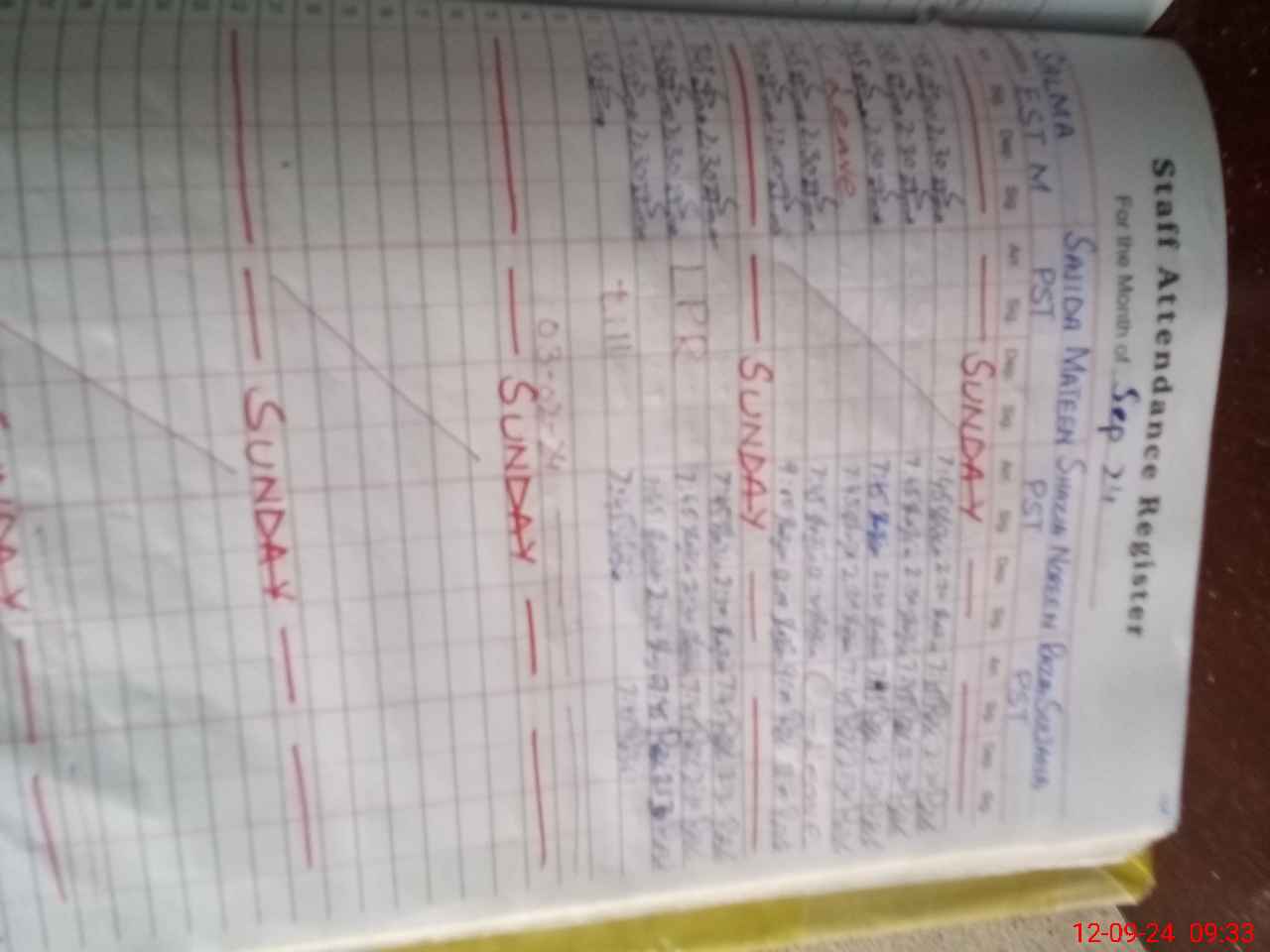 | CNIC | Full Name | Designation | R/C | Absence During Last Calender Month |