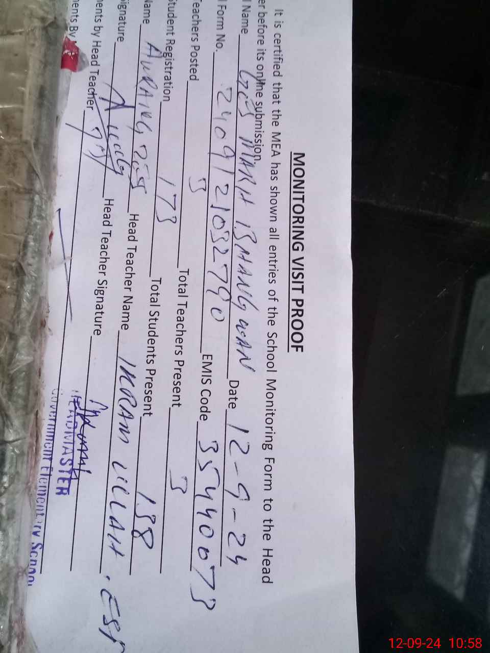 | Name: MA**** AL**** Designation: (School Headmaster's/Headmistress's) SST Phone/Cell Number: 03**** |