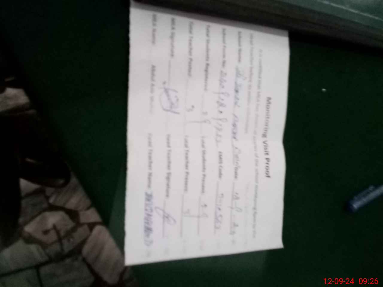 | Attendance Register | Head Teacher | MEA with School | Visit Proof |