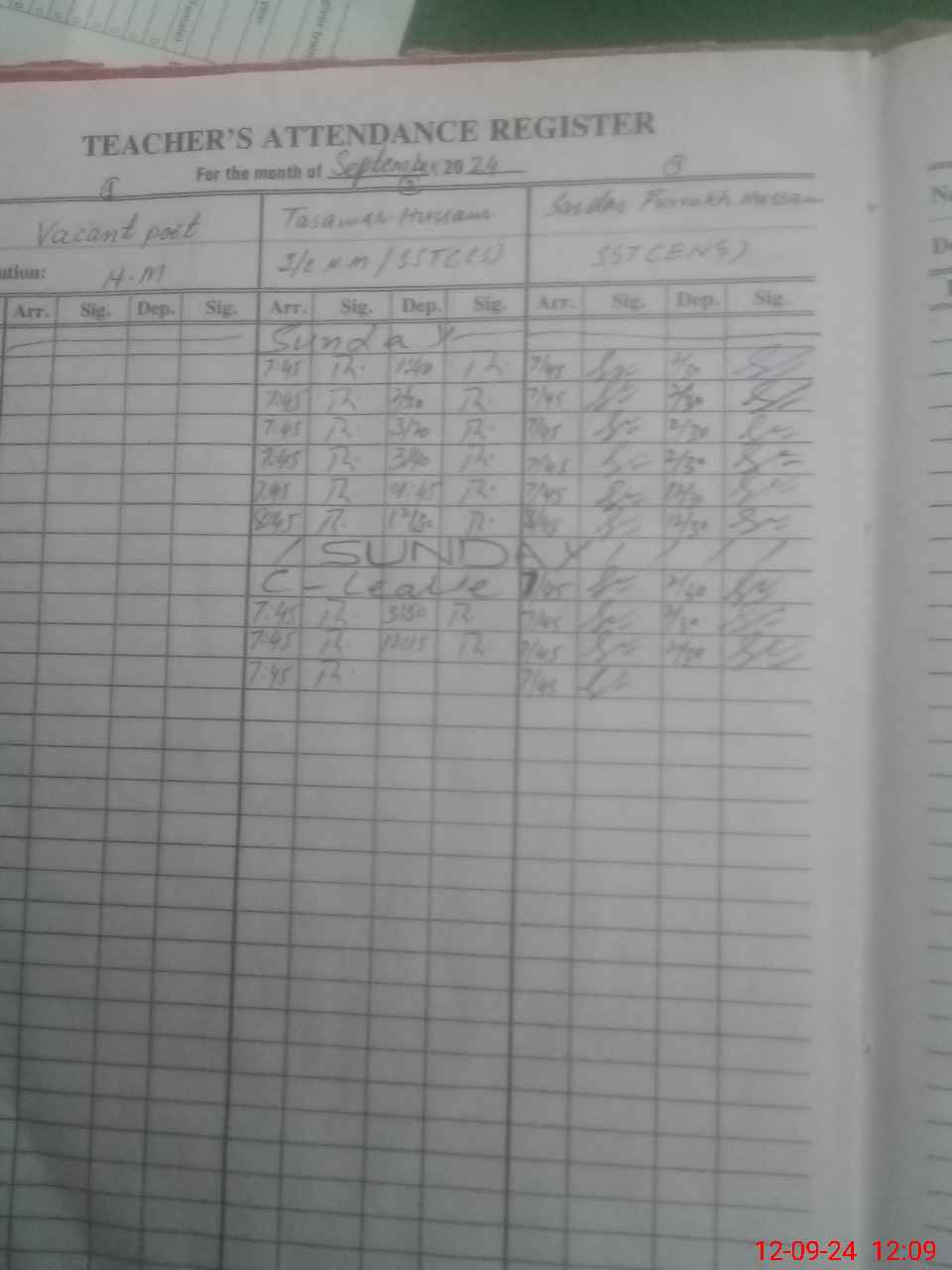 | CNIC | Full Name | Designation | R/C | Absence During Last Calender Month |