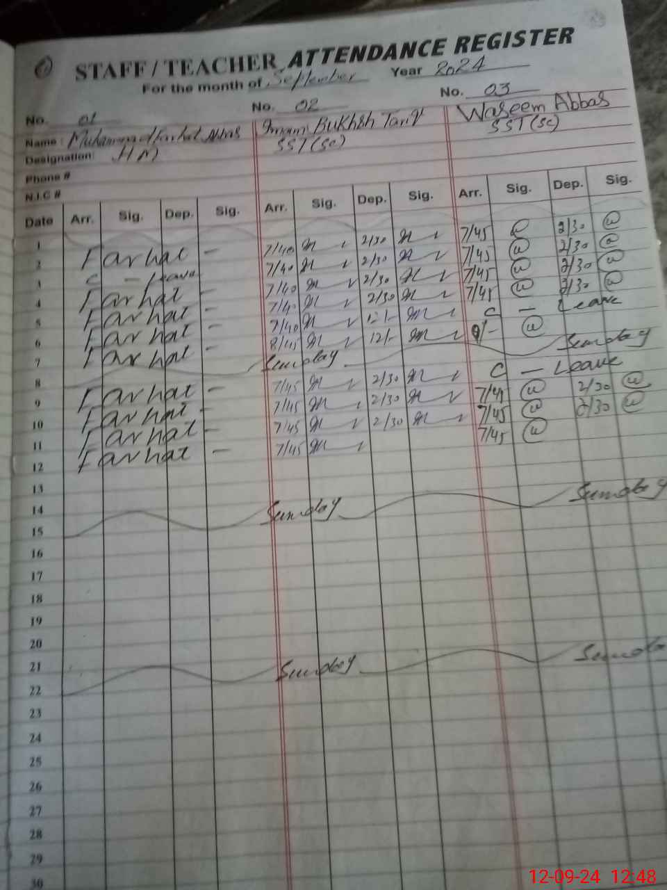 | Name: Mu**** Fa**** Ab**** Designation: (School Headmaster's/Headmistress's) HM Phone/Cell Number: 03**** |