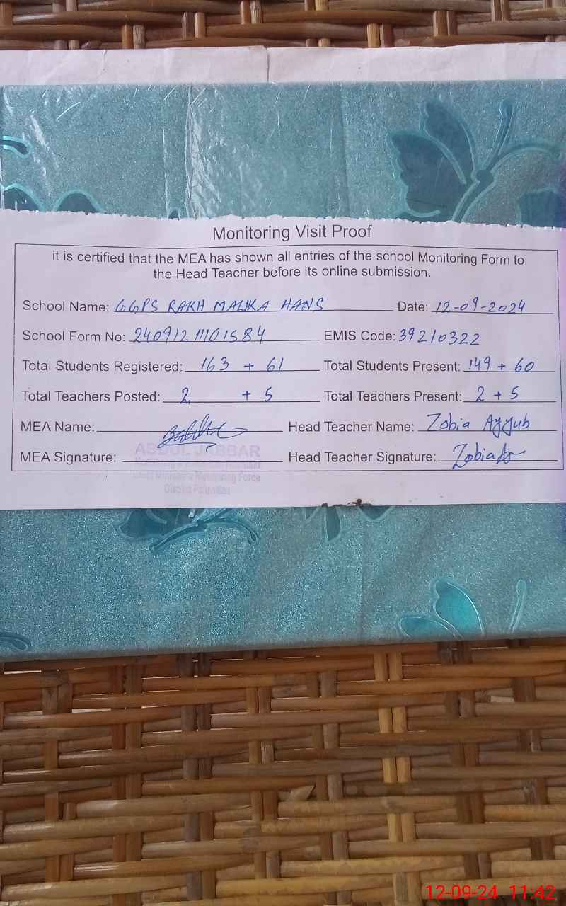 | EMIS Code: 39210322 | Name of School: GGPS RAKH MALIKA HANS | |||