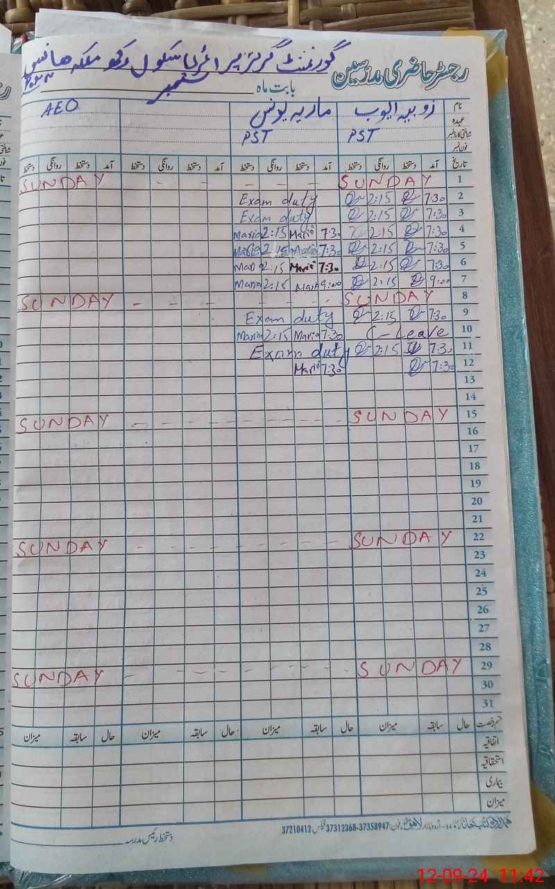 | CNIC | Full Name | Designation | R/C | Absence During Last Calender Month |