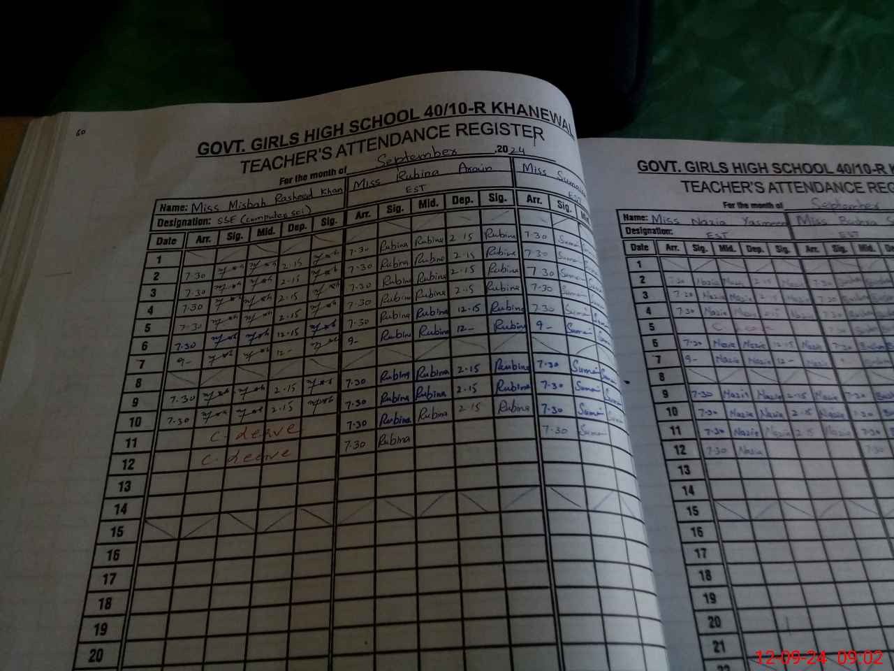 | 36**** | Mi**** Ra**** Kh**** | 2 | 1 | 0 | 0 | 0 | 0 | 0 | 0 | 0 | 1 | Absent (Un-Authorized) | |