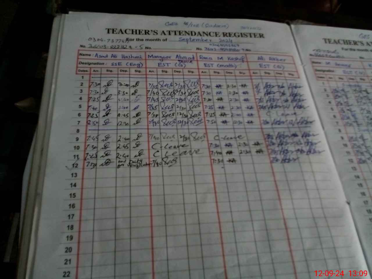 | CNIC | Full Name | Designation | R/C | Absence During Last Calender Month |