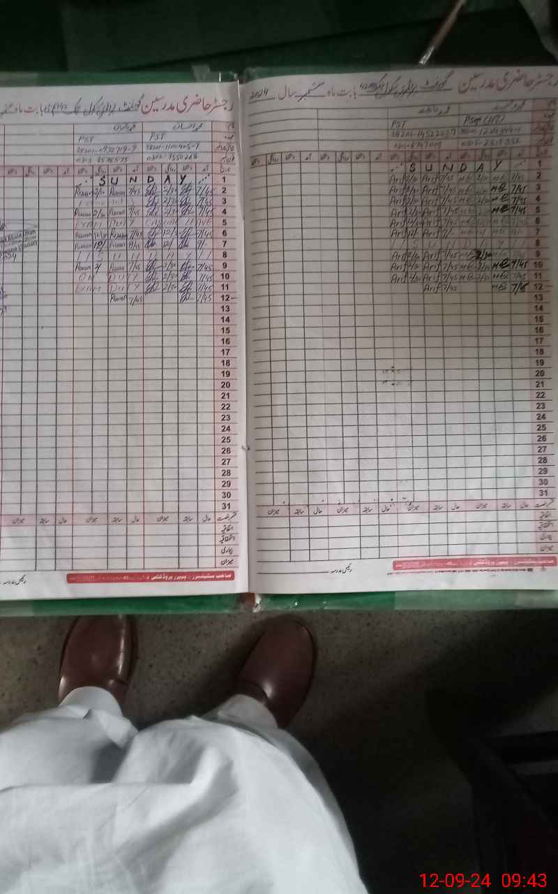 | CNIC | Full Name | Designation | R/C | Absence During Last Calender Month |