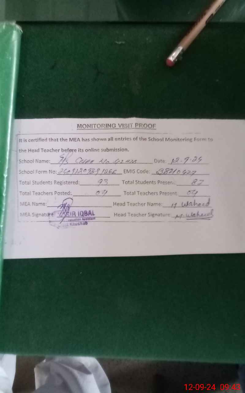 | EMIS Code: 38210427 | Name of School: GPS CHAK NO. 42 MB | |||