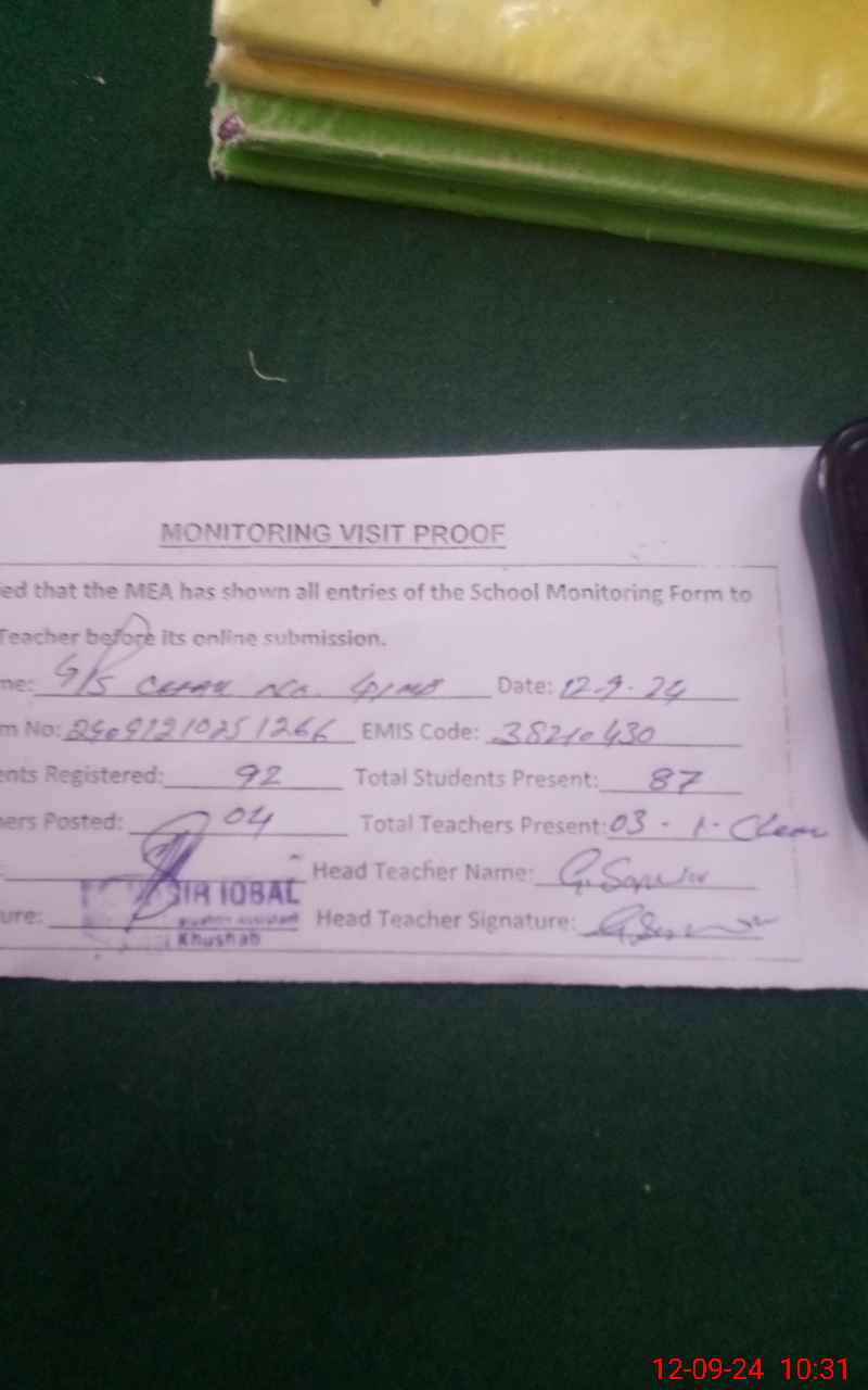 | EMIS Code: 38210430 | Name of School: GPS CHAK NO. 41 MB | |||