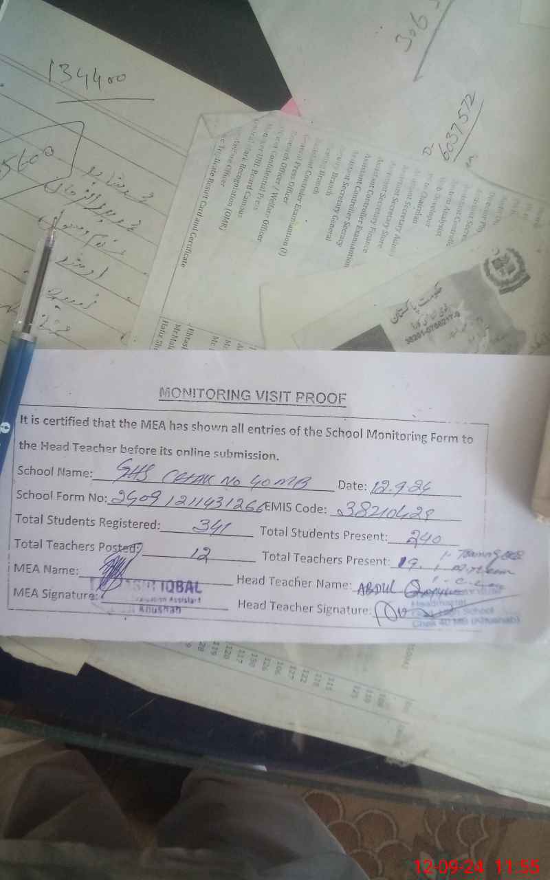 | EMIS Code: 38210429 | Name of School: GHS CHAK NO. 40 MB | |||