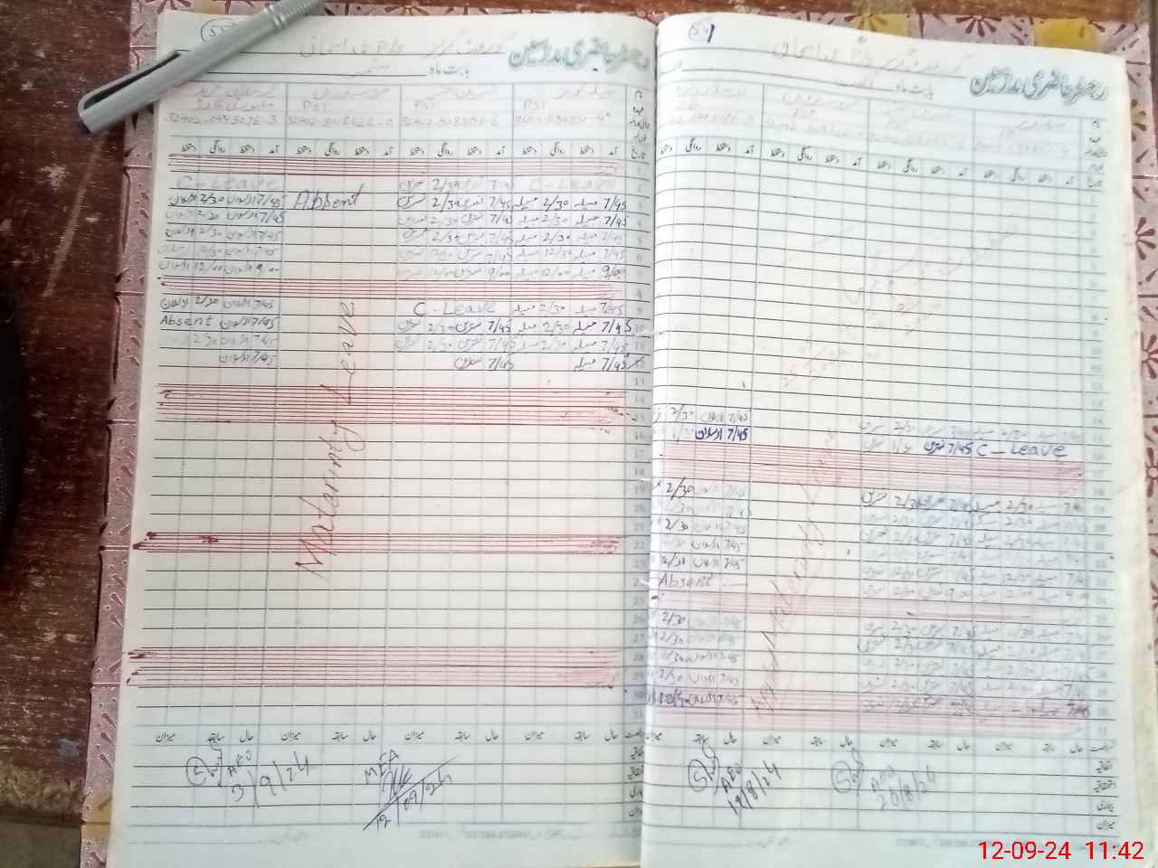 | CNIC | Full Name | Designation | R/C | Absence During Last Calender Month |