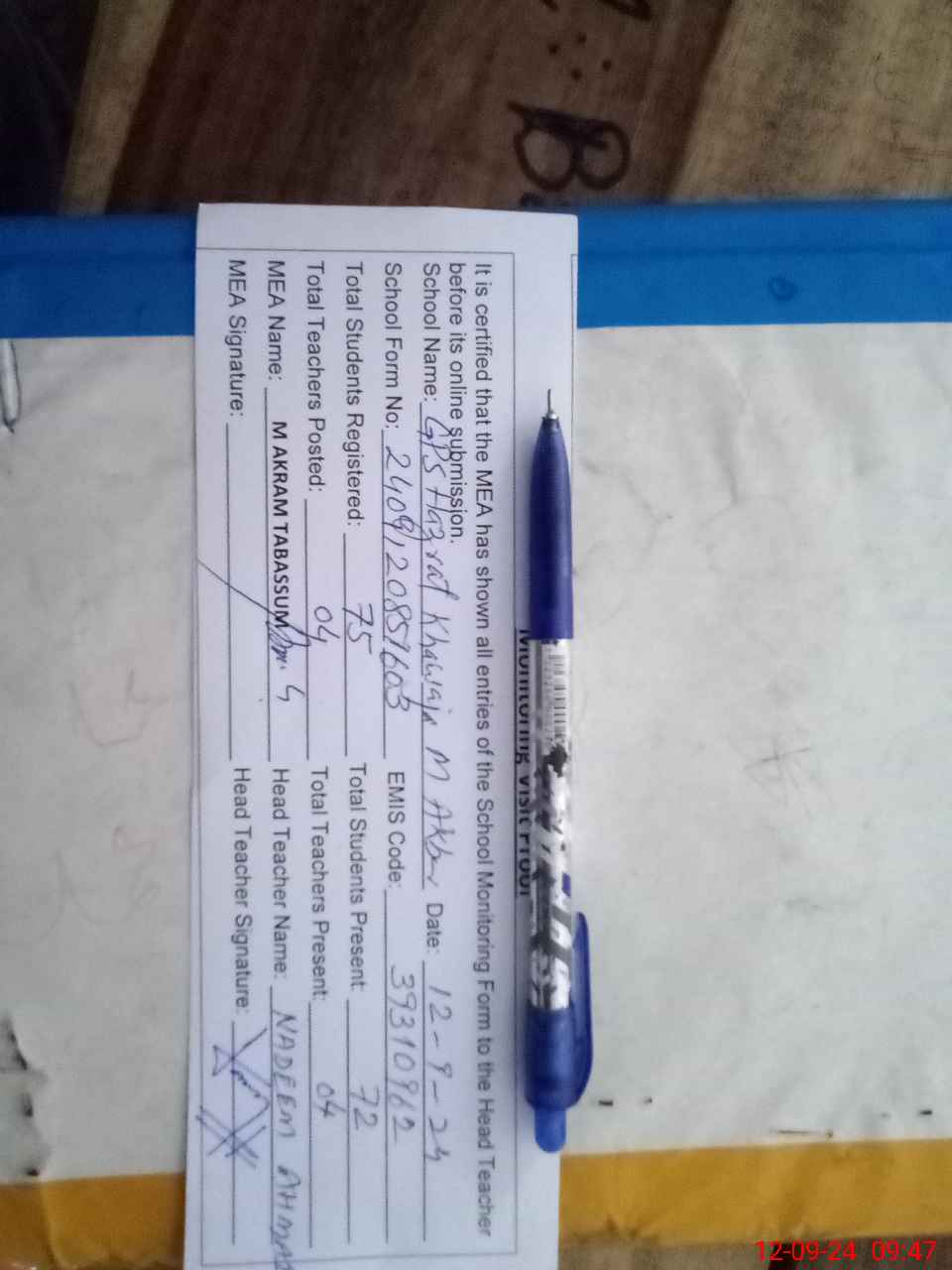 | EMIS Code: 39310962 | Name of School: GPS HAZRAT KHAWAJA M AKBAR BASIR PUR | |||