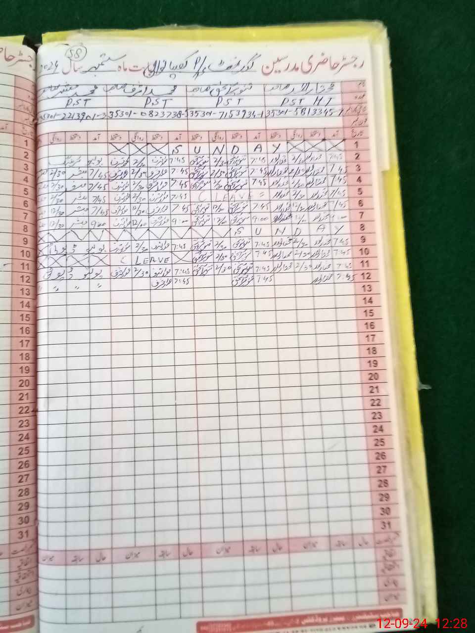 | CNIC | Full Name | Designation | R/C | Absence During Last Calender Month |