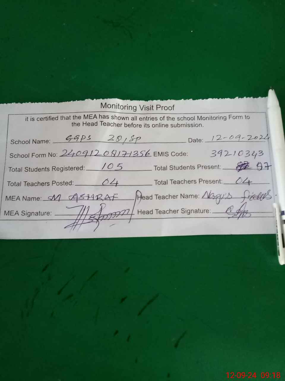 | EMIS Code: 39210343 | Name of School: GGPS 28 SP | |||