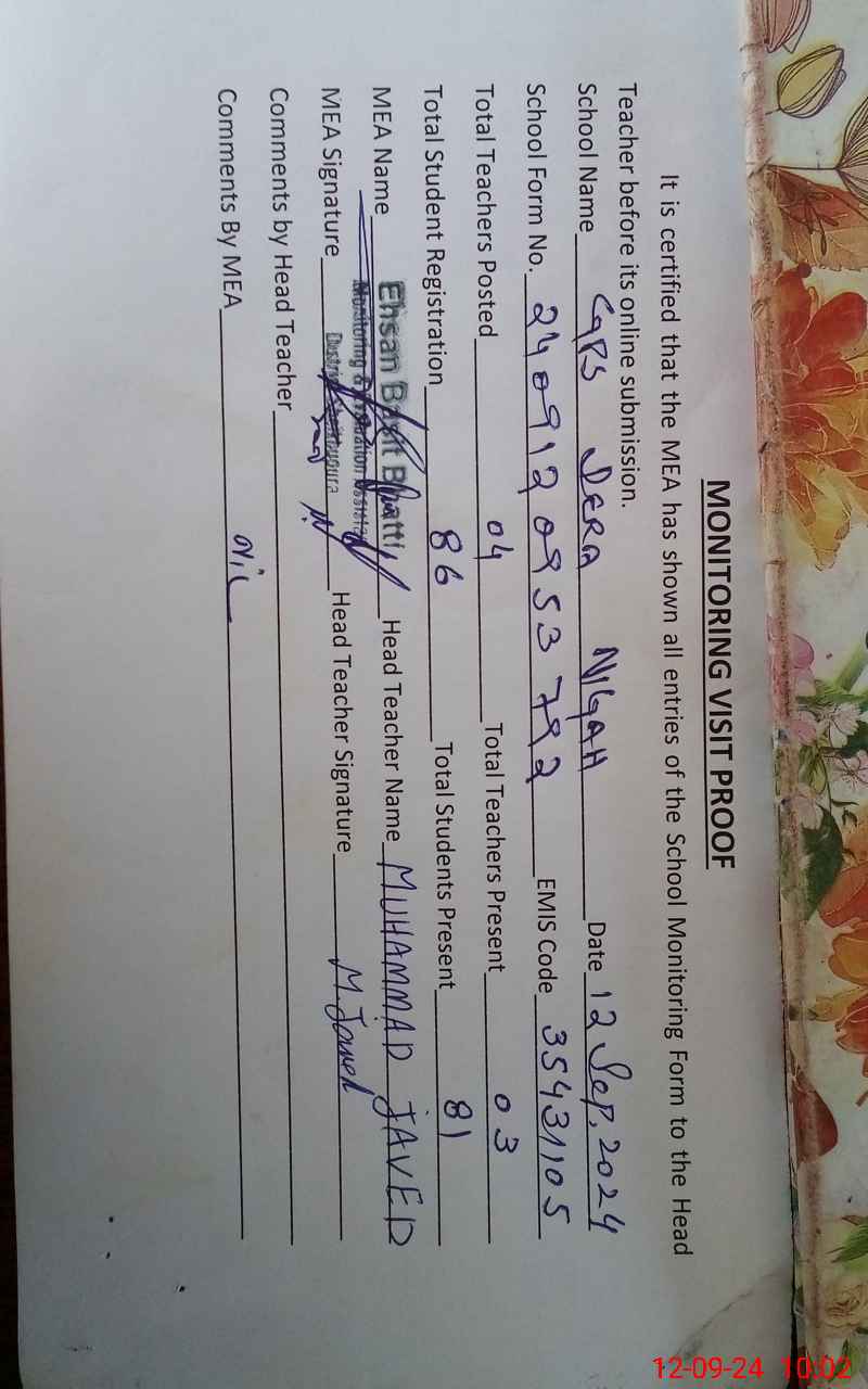| EMIS Code: 35431105 | Name of School: GPS DERA NIGAH | |||