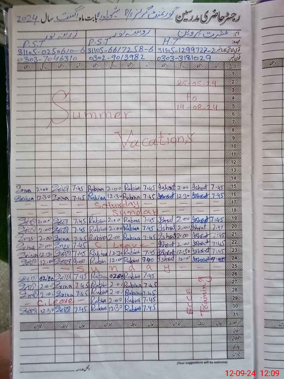 | Name: Es**** Pe**** Designation: (School Headmaster's/Headmistress's) PST Phone/Cell Number: 03**** |