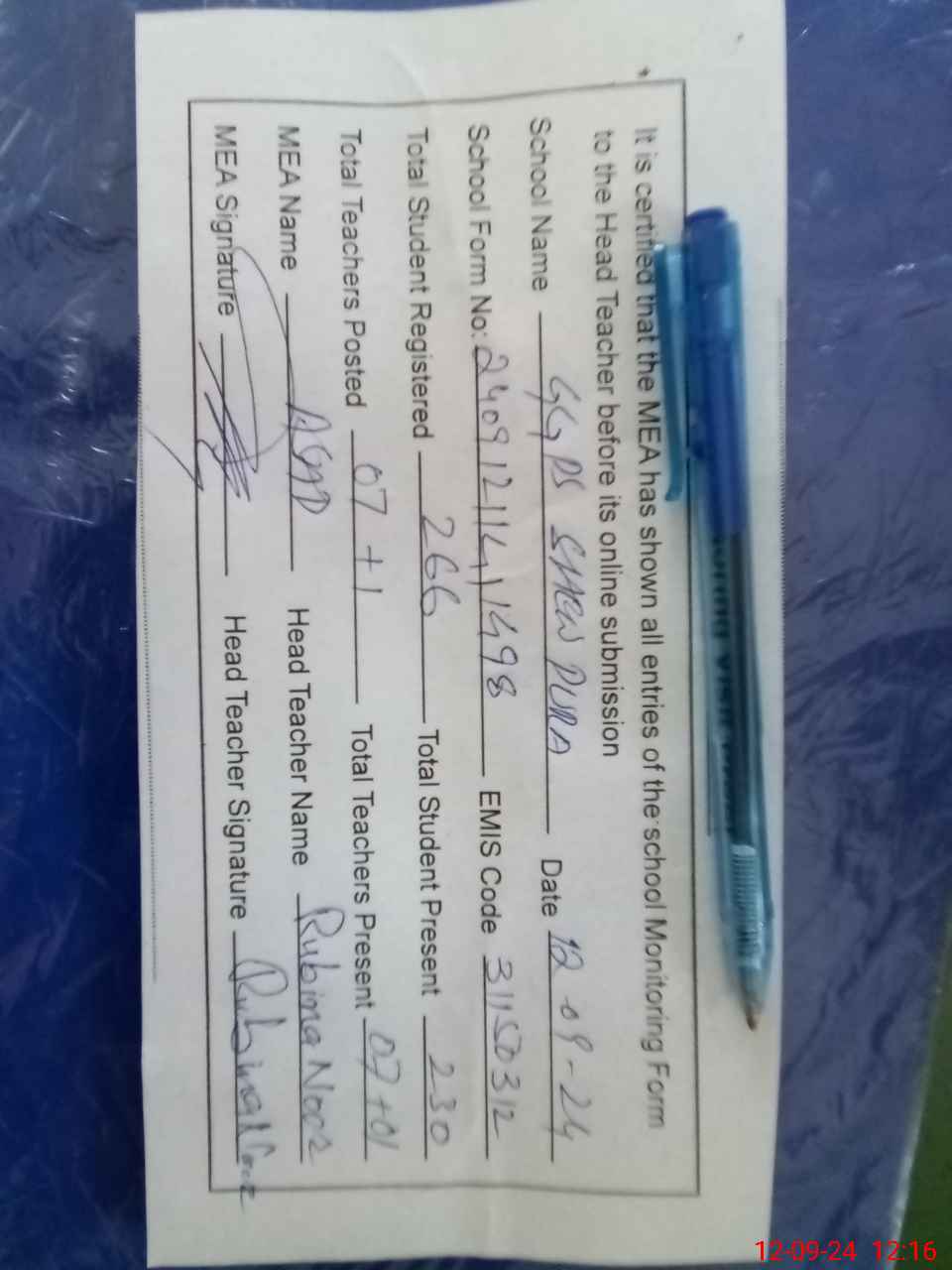 | EMIS Code: 31150312 | Name of School: GGPS SHEV PURA | |||