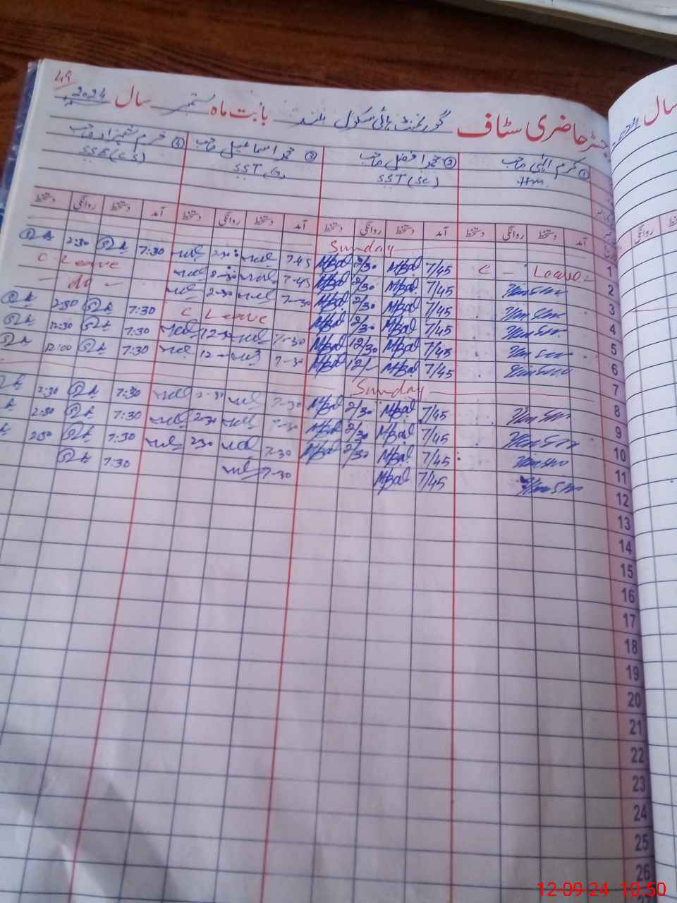 | CNIC | Full Name | Designation | R/C | Absence During Last Calender Month |