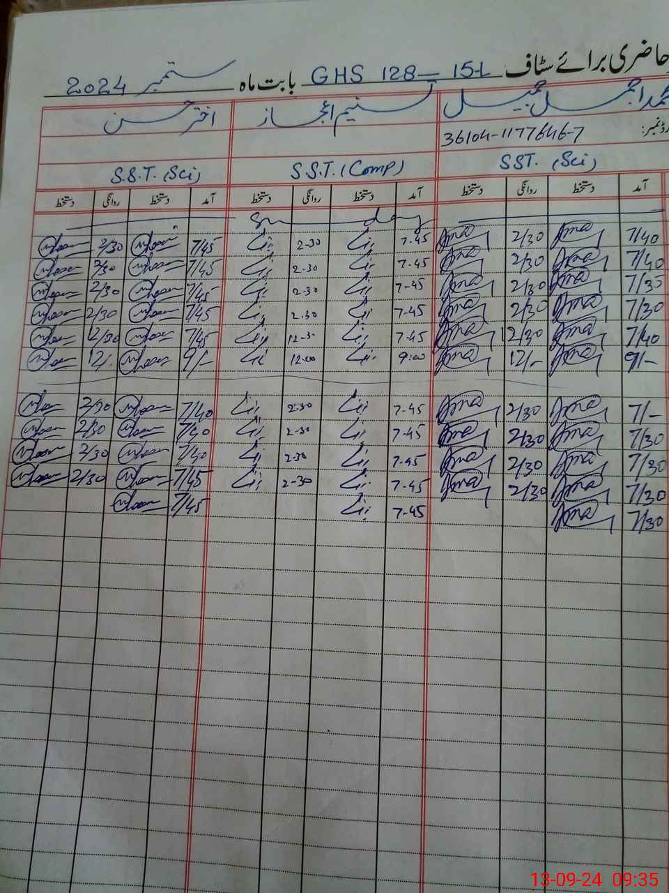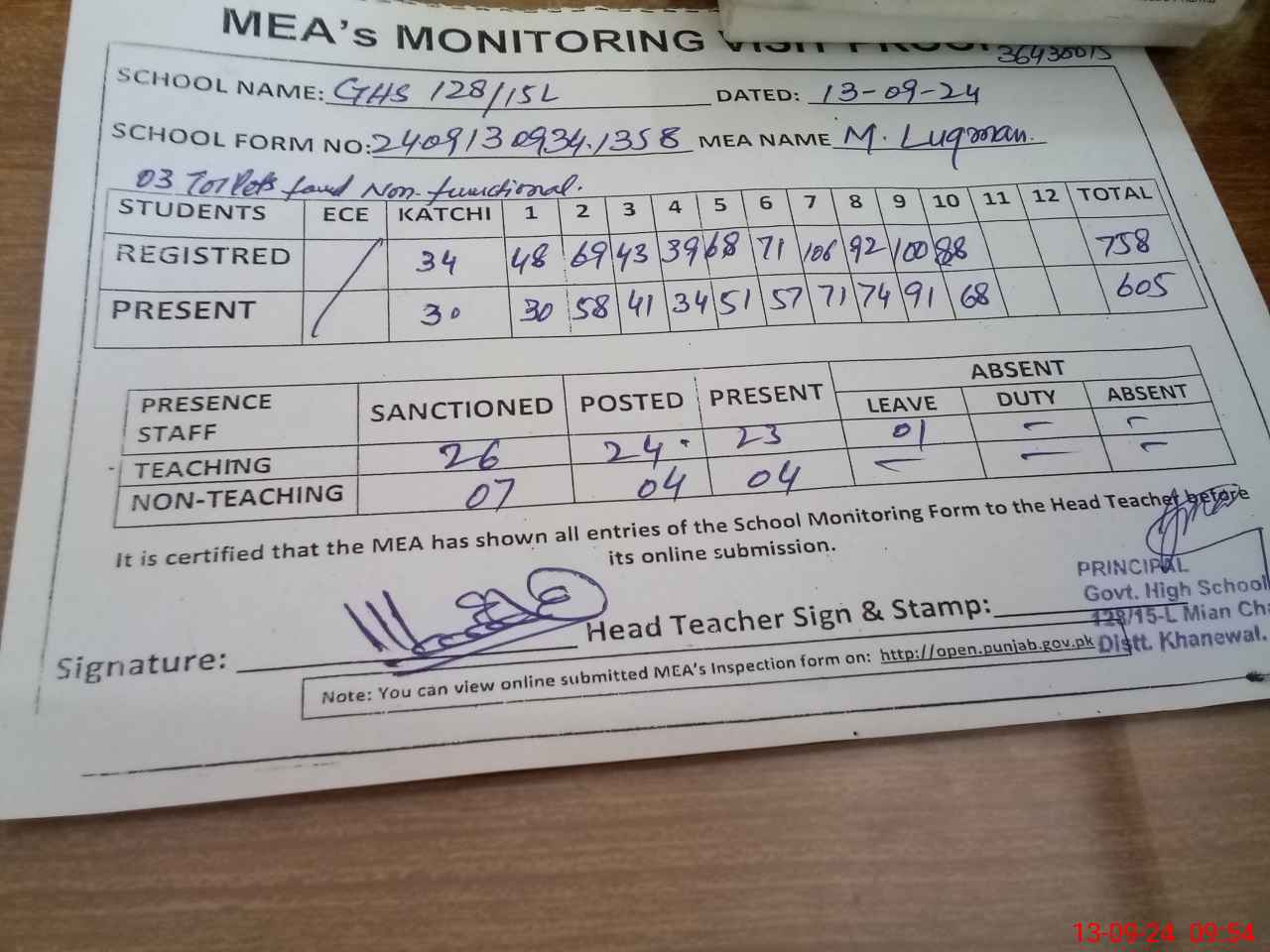 | EMIS Code: 36430015 | Name of School: GHS 128/15-L, MIAN CHANNU | |||