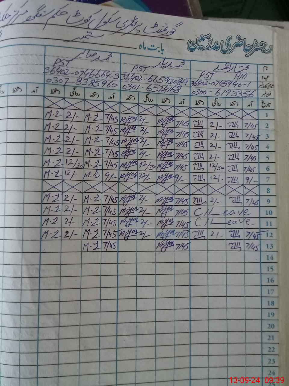 | Name: MU**** AH**** Designation: (School Headmaster's/Headmistress's) PST Phone/Cell Number: 03**** |