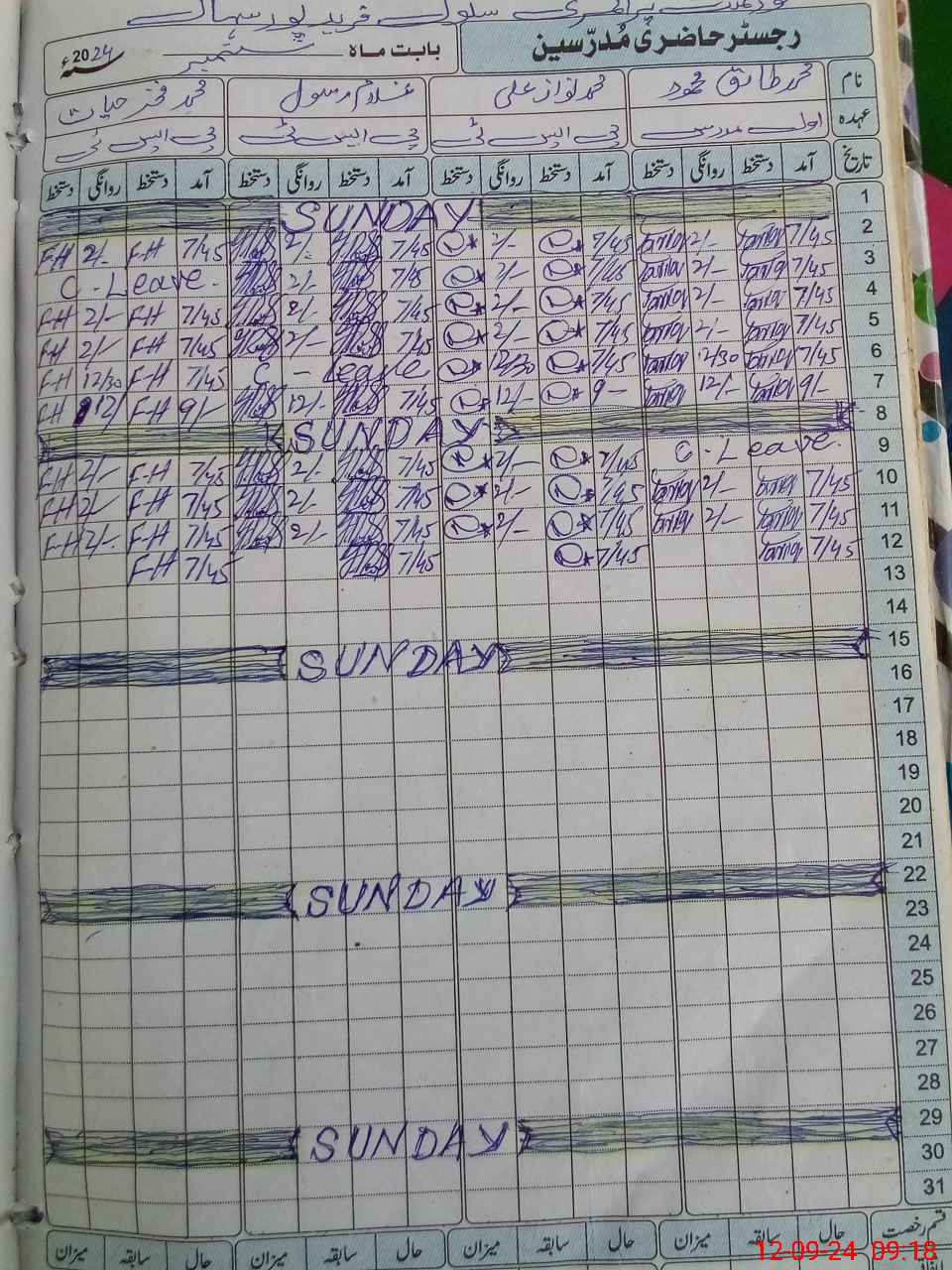 | CNIC | Full Name | Designation | R/C | Absence During Last Calender Month |