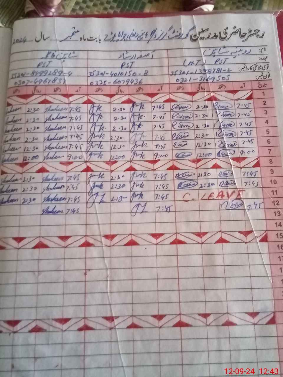 | Name: RO**** SH**** Designation: (School Headmaster's/Headmistress's) PST Phone/Cell Number: 03**** |