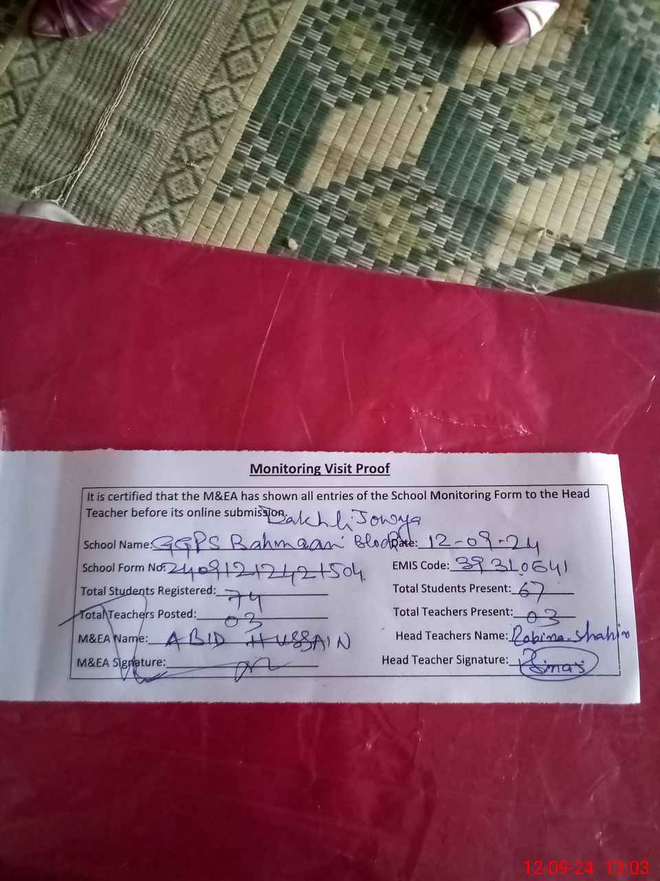 | EMIS Code: 39310641 | Name of School: GGPS BAHMANI DAKHLI JOWAYA BALOCH | |||