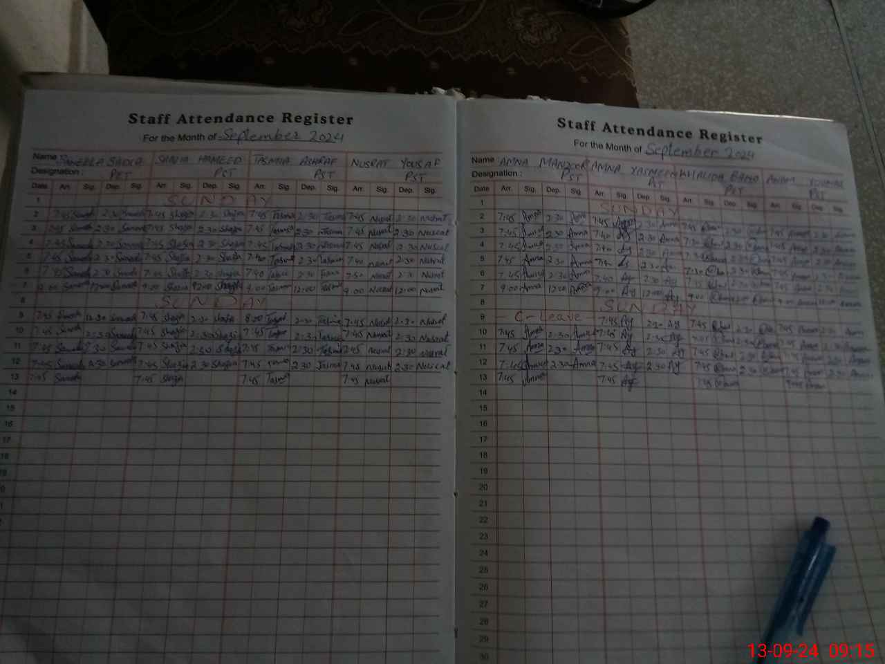 | CNIC | Full Name | Designation | R/C | Absence During Last Calender Month |