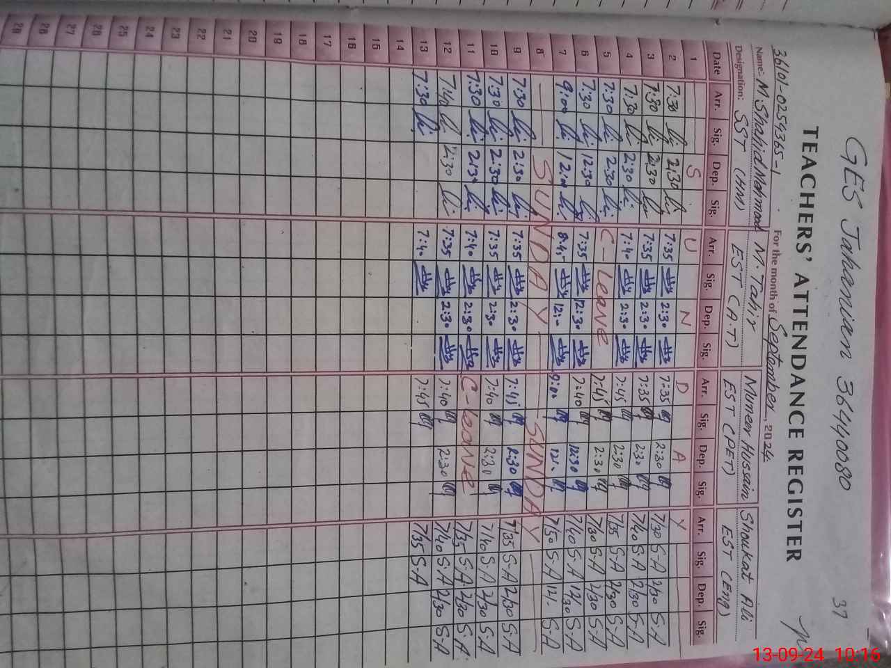 | Name: Sy**** Af**** Hu**** Sh**** Designation: (School Headmaster's/Headmistress's) S.S.T.(Arts) Phone/Cell Number: 03**** |