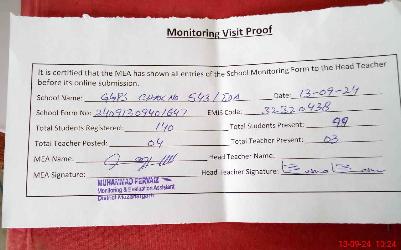 | EMIS Code: 32320438 | Name of School: GGPS CHAK NO. 543 TDA | |||