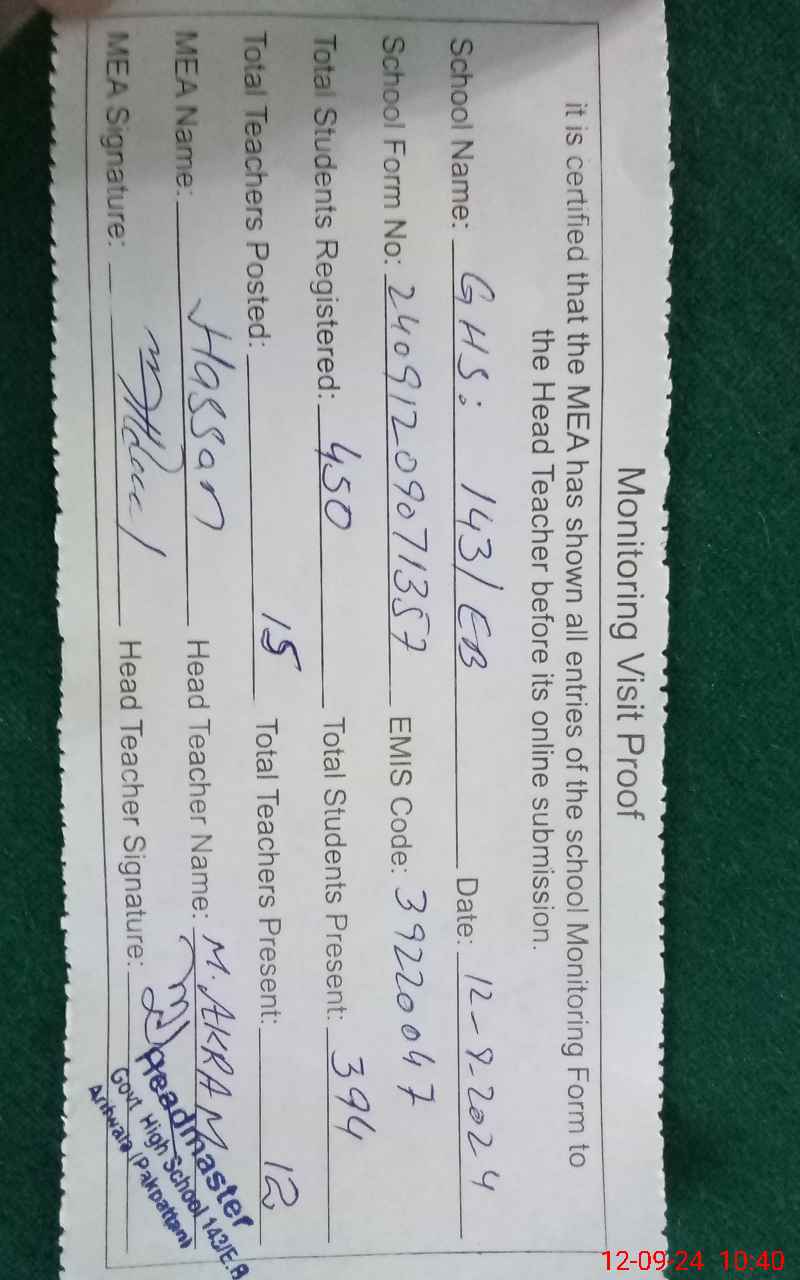 | EMIS Code: 39220047 | Name of School: GHS 143 EB PO 143 EB | |||