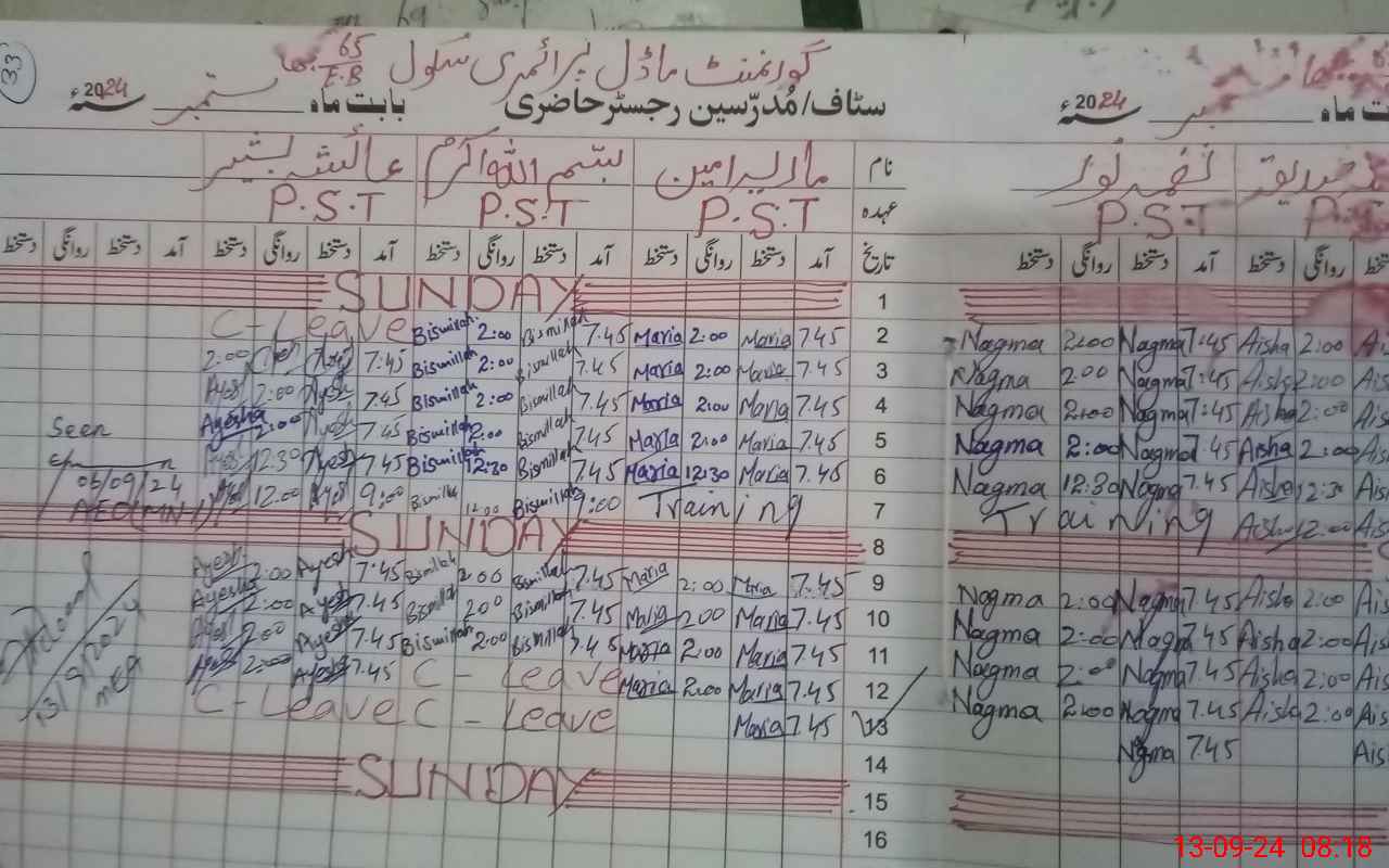 | Name: AM**** MA**** Designation: (School Headmaster's/Headmistress's) PST Phone/Cell Number: 03**** |