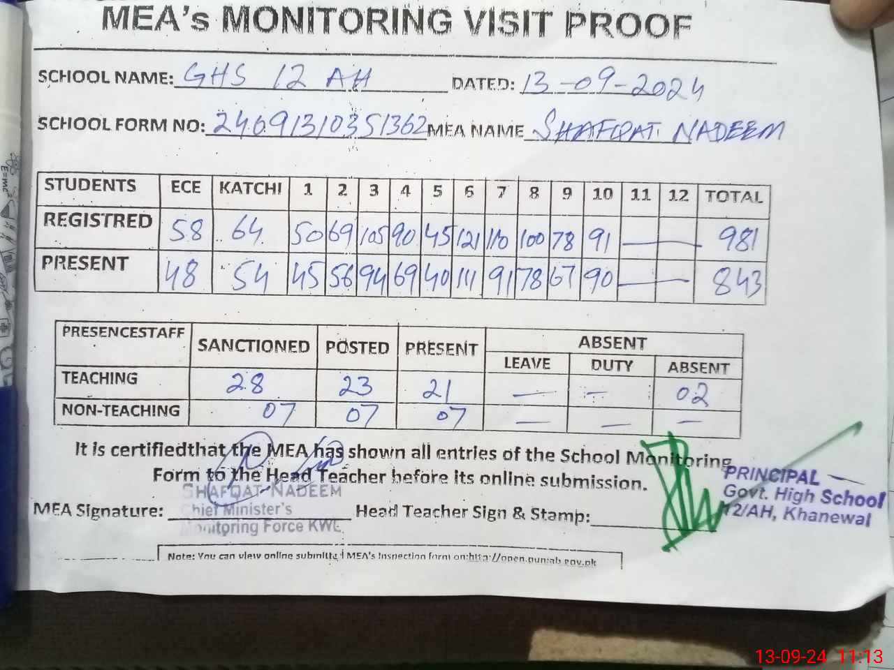 | EMIS Code: 36420006 | Name of School: GHS 12/AH, KHANEWAL | |||