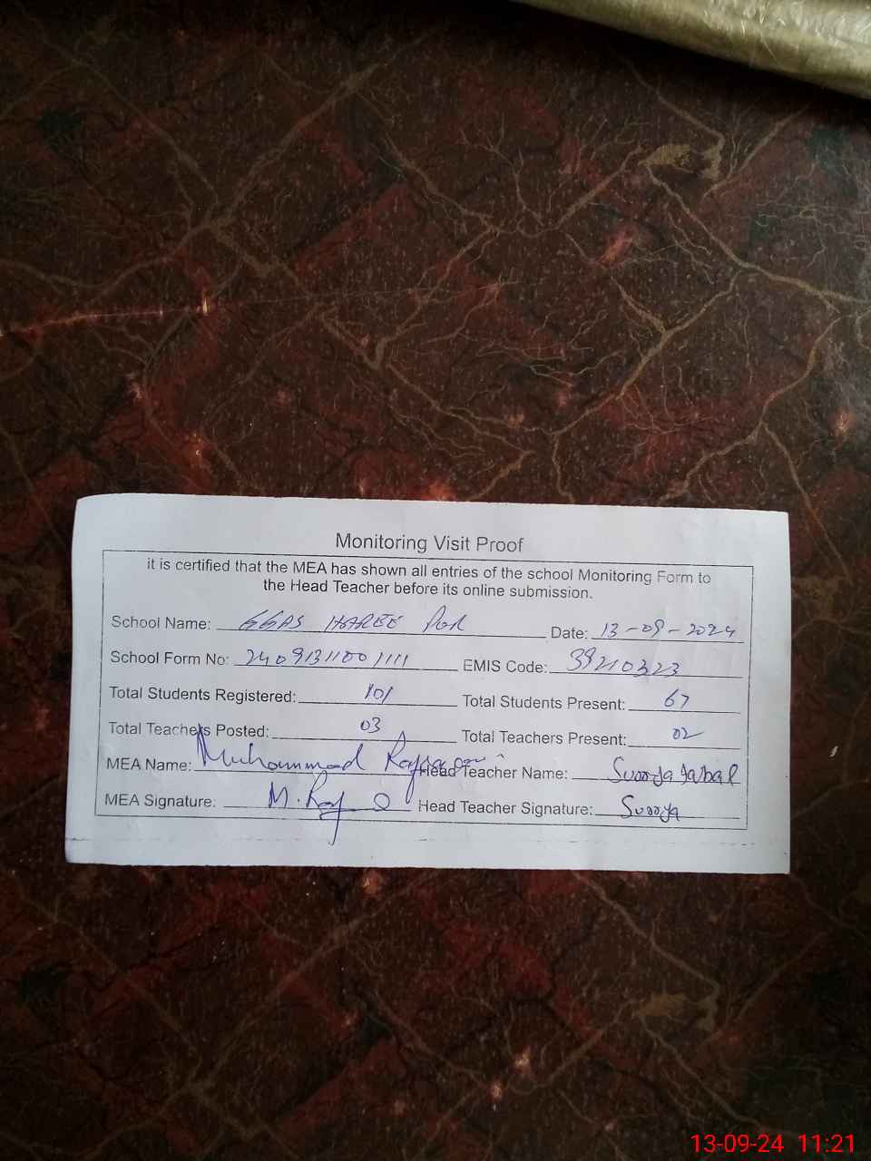 | EMIS Code: 39210323 | Name of School: GGPS HAREE PUR | |||