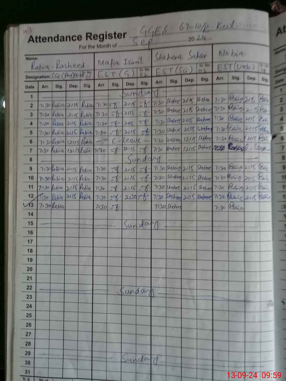 | Monitoring Date: 13-09-2024 | Start Time: 13-09-2024 09:36 AM | End Time: 13-09-2024 10:20 AM | Name of MEA: GH**** AB**** | |