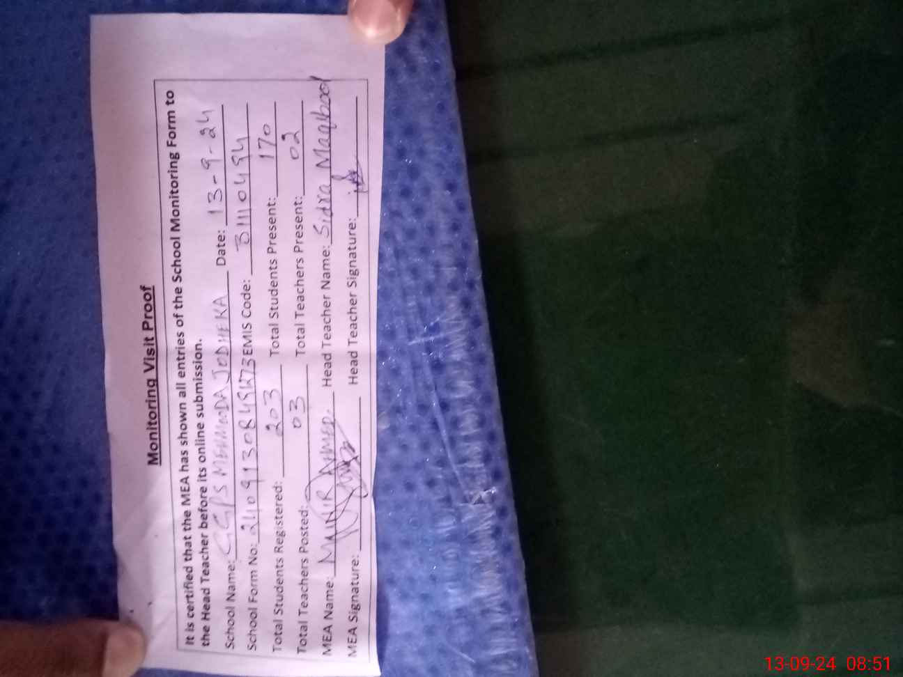 | EMIS Code: 31110494 | Name of School: GGPS MEHMOODA JODHEKA | |||