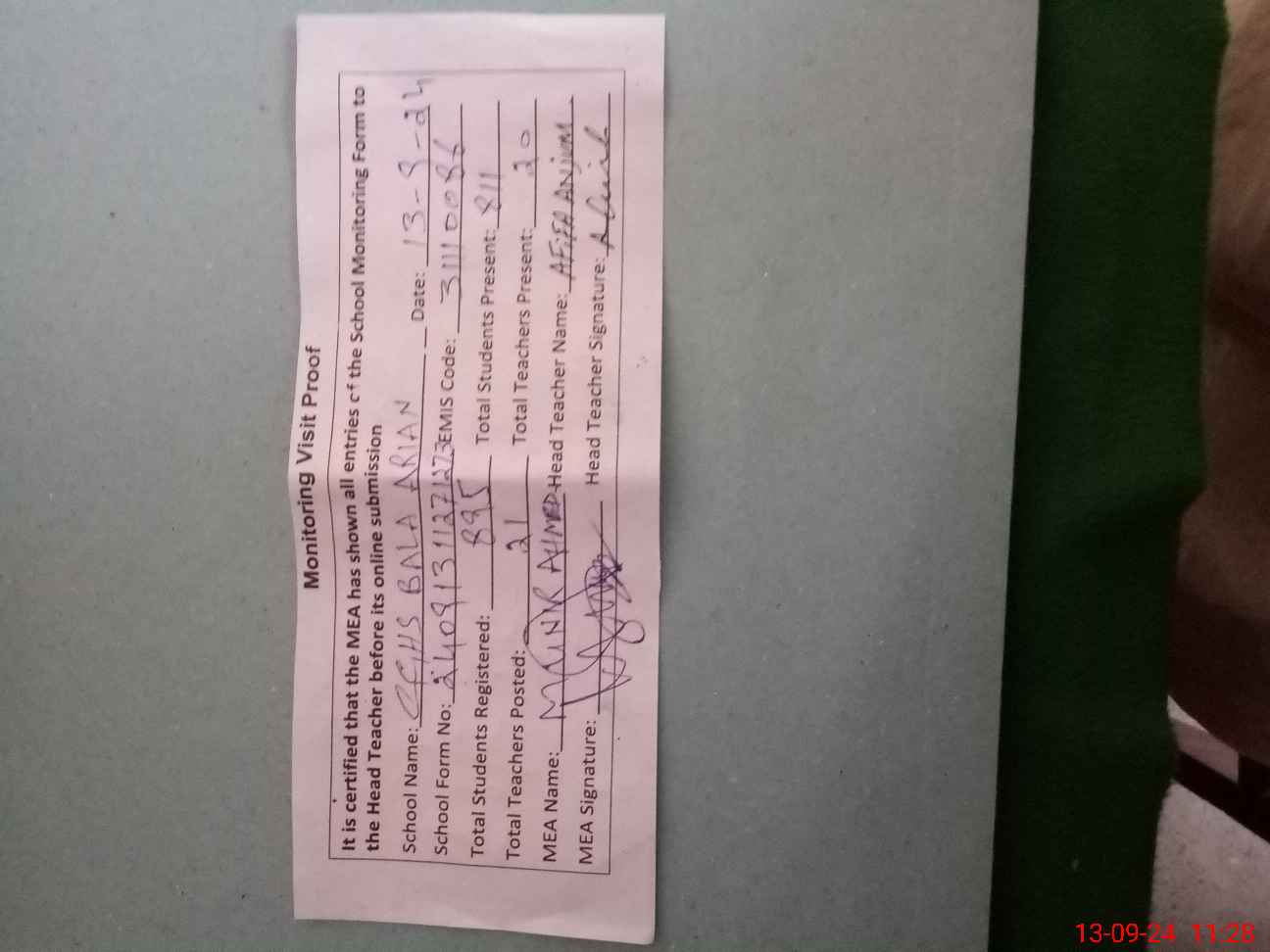 | EMIS Code: 31110086 | Name of School: GGHS BALA ARRIAN | |||