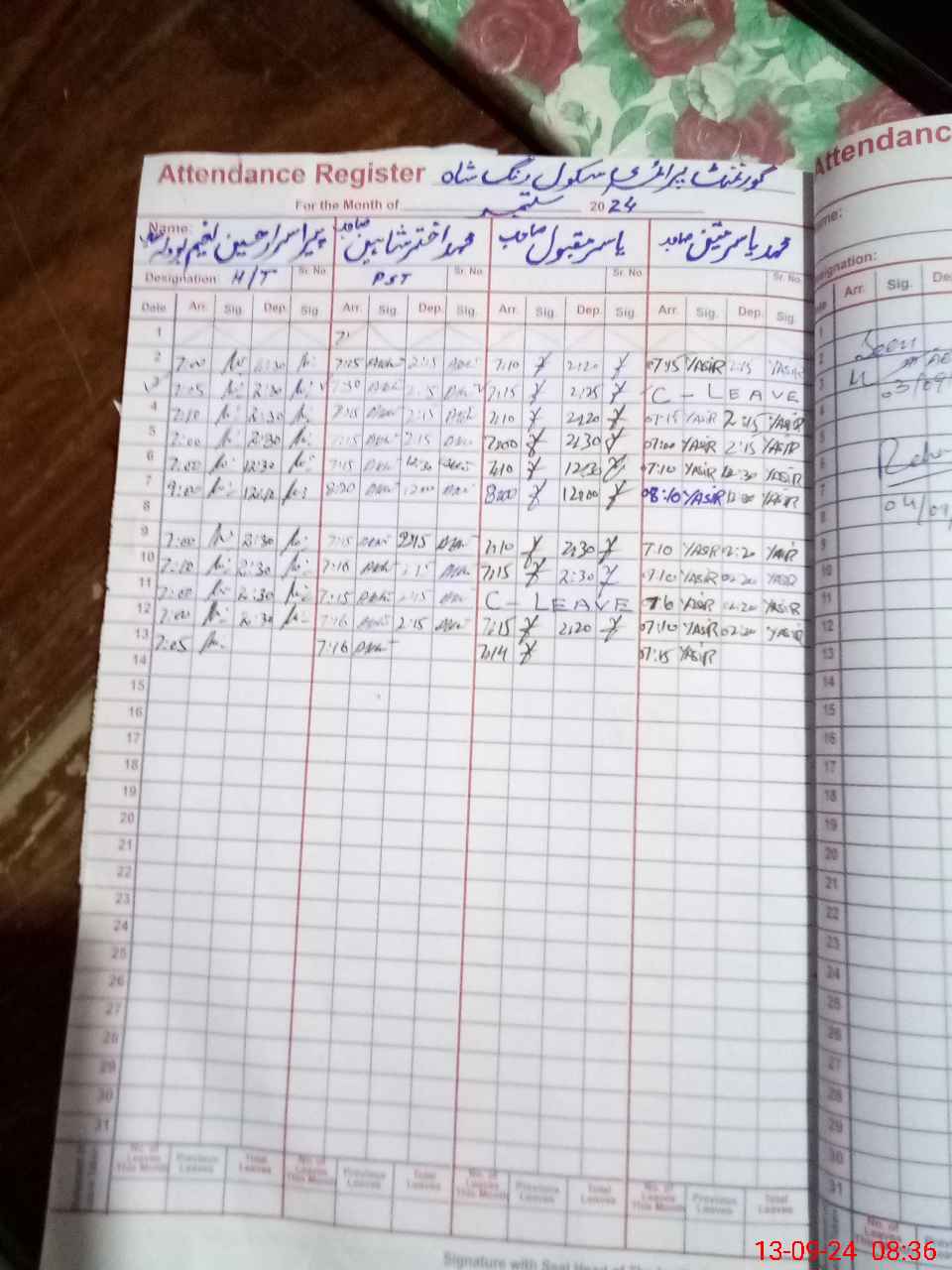 | CNIC | Full Name | Designation | R/C | Absence During Last Calender Month |