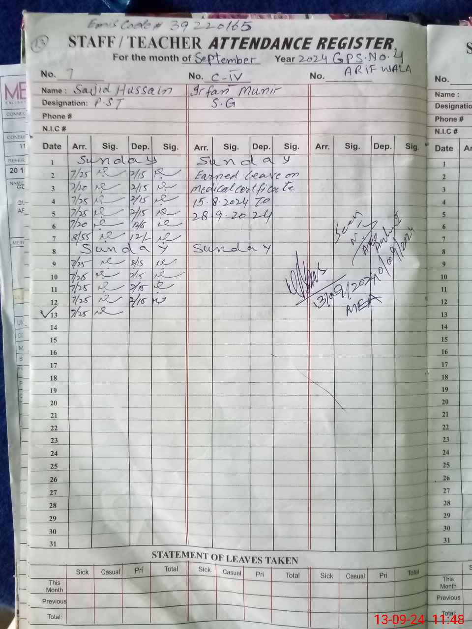 | EMIS Code: 39220165 | Name of School: GPS ARIF WALA NO 4 | |||