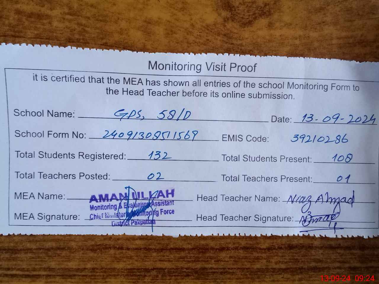 | EMIS Code: 39210286 | Name of School: GPS 58/D | |||