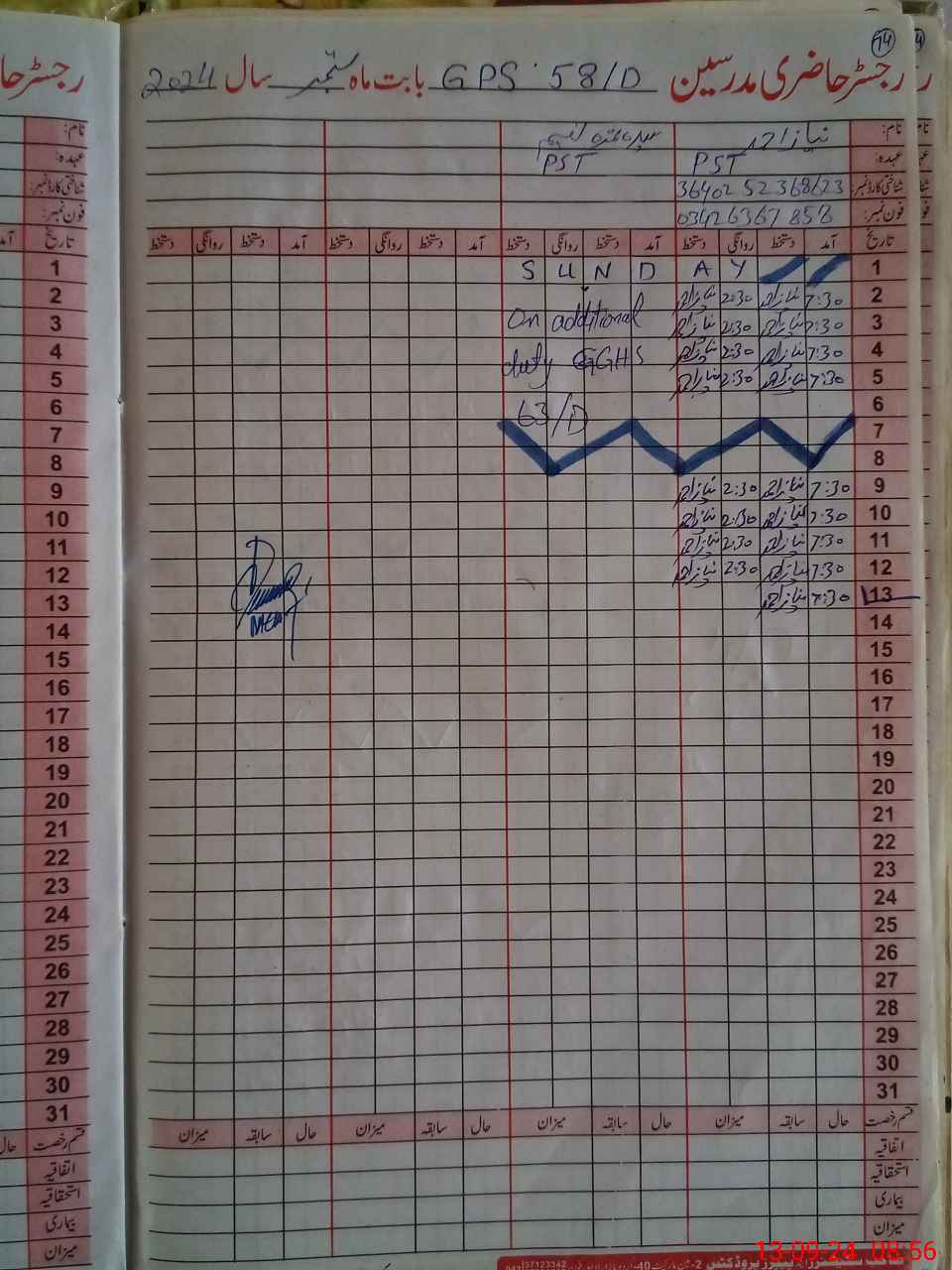 | Name: Sy**** Sa**** Na**** Designation: (School Headmaster's/Headmistress's) PST Phone/Cell Number: 03**** |