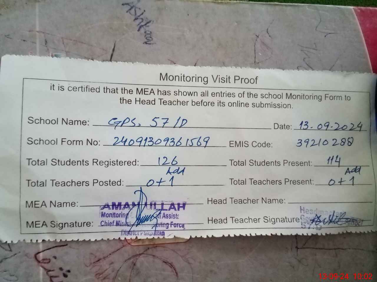 | EMIS Code: 39210288 | Name of School: GPS 57/D | |||