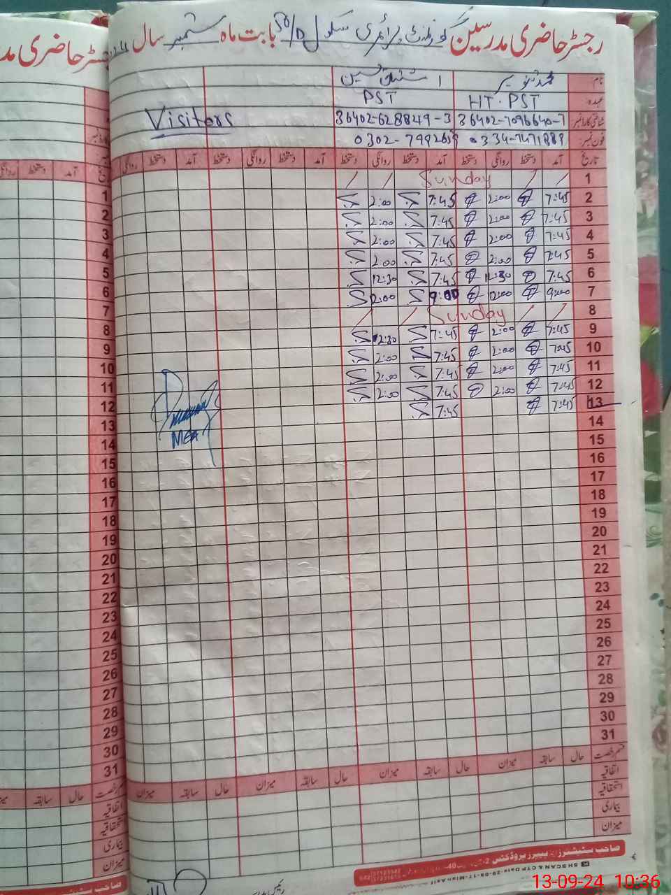 | Name: MTa**** Designation: (School Headmaster's/Headmistress's) PST Phone/Cell Number: 03**** |